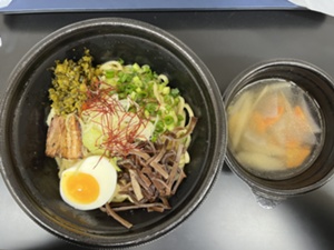 今日はビルの「感謝祭」 一年の感謝を込めて、油そばのご提供がありました。 おいしいご飯で午後も元気に頑張ります