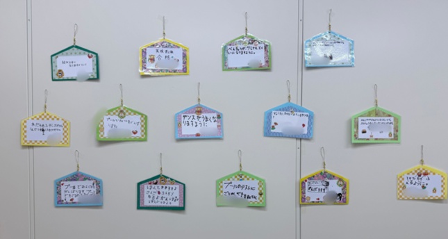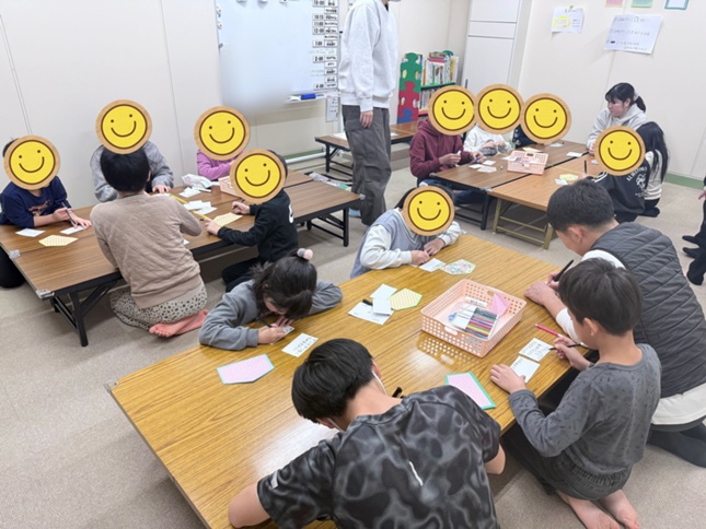 すまいるでは、冬休みの活動で、絵馬作りを行いました 画用紙の色やシールなどの装飾は、子どもたち一人ひとりが「これにしたい!」と自分で選び、「今年がどんな一年になってほしいか」「がんばりたいことは何か」を話し合い、それぞれの目標を絵馬に書き込んで完成させました 完成した絵馬は、みんなで見られる場所に掲示し、日々目標を意識できるようにしています📌 活動を通して、自分の思いを言葉にすることや、友だちの考えを聞くことの大切さを感じる、温かい時間となりました🌈