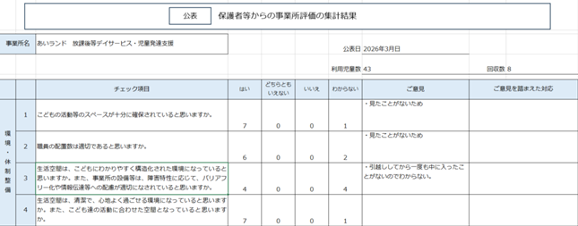 保護者等からの事業所評価の集計結果