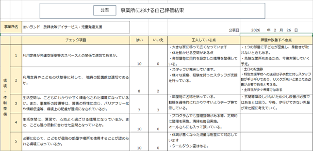 自己評価 児童発達支援 あいランド