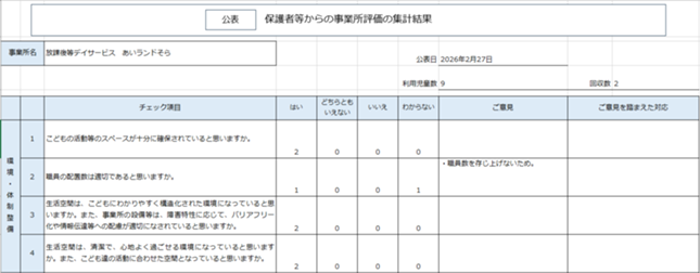 保護者等からの事業所評価の集計結果