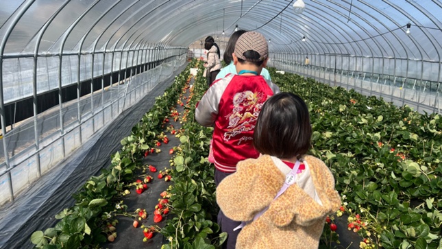 先日、みんなでいちご狩りに行ってきました🍓🧺 ハウスの中には真っ赤ないちごがたくさん‼️ 「これおおきいよ!」「おいしい!」と大興奮でした🌟 「20こたべたよ!」と笑顔いっぱいで、心もお腹も満たすことができました😋 旬の果物に触れ、収穫体験を楽しみながら、季節を感じることができる良い機会となりました✨ 今後も季節のイベントを取り入れながら、楽しい時間を過ごしていきたいと思います⏰🍀