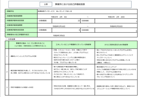 事業所における自己評価総括表保護者等からの事業所評価の集計結果事業所における自己評価結果